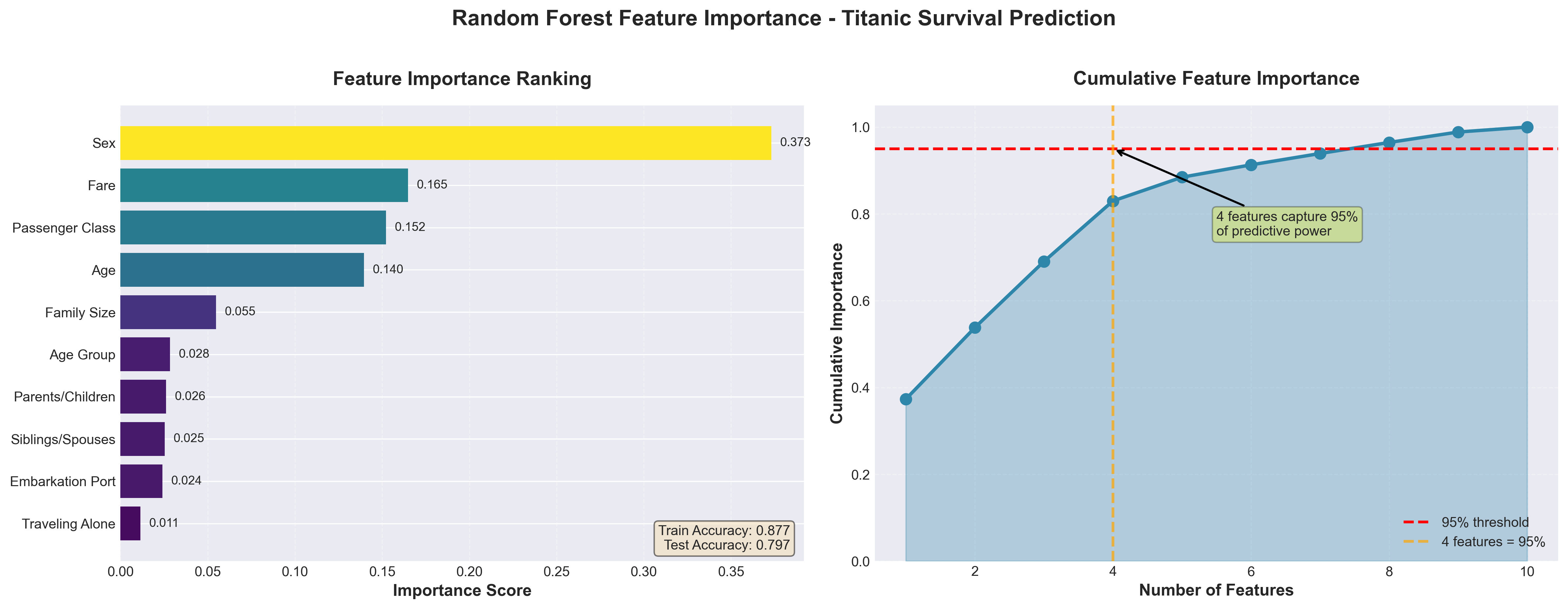 }).sort_values('importance', ascending=False)Feature importance scores sum to 1.0 across all features. A feature with importance 0.15 contributes roughly 15% of the model’s total predictive ability, though this interpretation requires care because features often correlate with each other.
